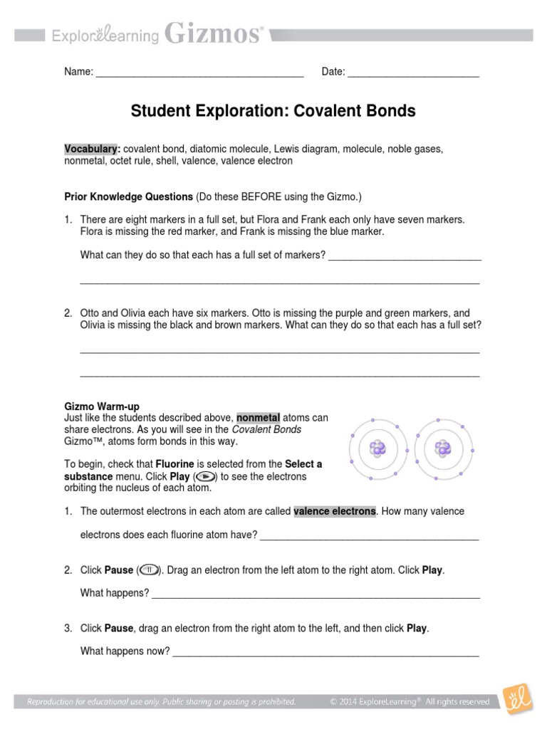 Maybe you would like to learn more about one of these? Check spelling or type a new query. Student exploration ionic bonds answer sheet. We did not find results for: